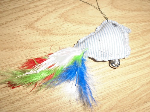 A přidáme provázek aby se mohl ptáček pověsit třeba na židli a kočička si bude spokejeně si hrát.